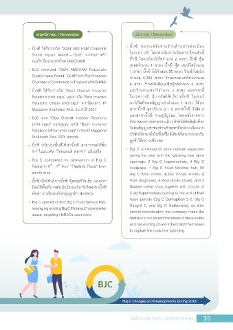 • บ่เจซี่ ได้ร่ับร่างวัล “2024 AMCHAM Corporate • บิ�กซี่ ข็ยีายีเคร่ือีข็่ายีร่้านค้าอียี่างตั่อีเนื�อีง