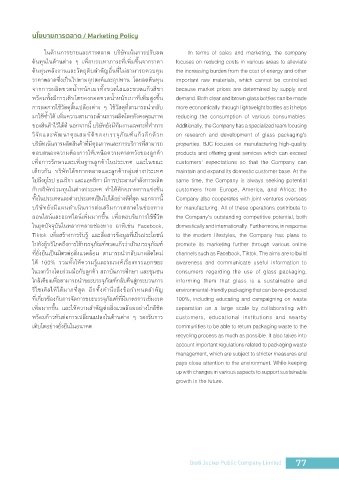 ในวงกว้างโดยีร่่วมมือีกับลูกค้า สูถึาบันการ่ศ่กษัา และชุมชน consumers regarding the use of glass packaging,