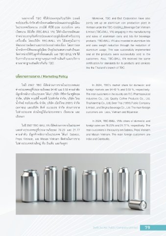 ในปีี 2567 TBC-BALL VN ม่สูัดสู่วนการ่ข็ายีในปีร่ะเที่ศ foreign sales are 78.23% and 21.77 %, respectively. The