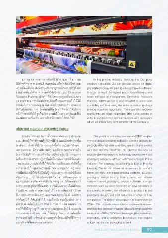 แผ่นกอีุตัสูาหกร่ร่มการ่พิิมพิ์ม่ผู่้ชำนาญการ่ที่่�สูามาร่ถึ In the printing industry division, the Company